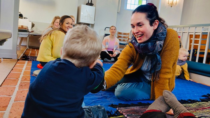 Vi synger, danser, leger og spiller nye og gamle børnesange, salmer og fagtesange.